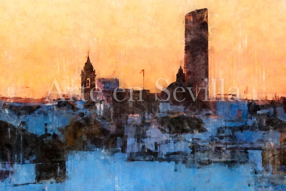 Dentro de la serie de cuadros de Sevilla modernos, esta pieza destaca por su equilibrio entre lo urbano y lo emocional. La Torre Sevilla emerge en el horizonte junto a otras referencias arquitectónicas, creando un diálogo entre la Sevilla histórica y la más contemporánea. Ese contraste le da profundidad a la composición y refuerza la idea de una ciudad viva, diversa y llena de matices.