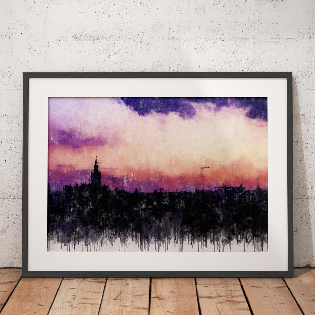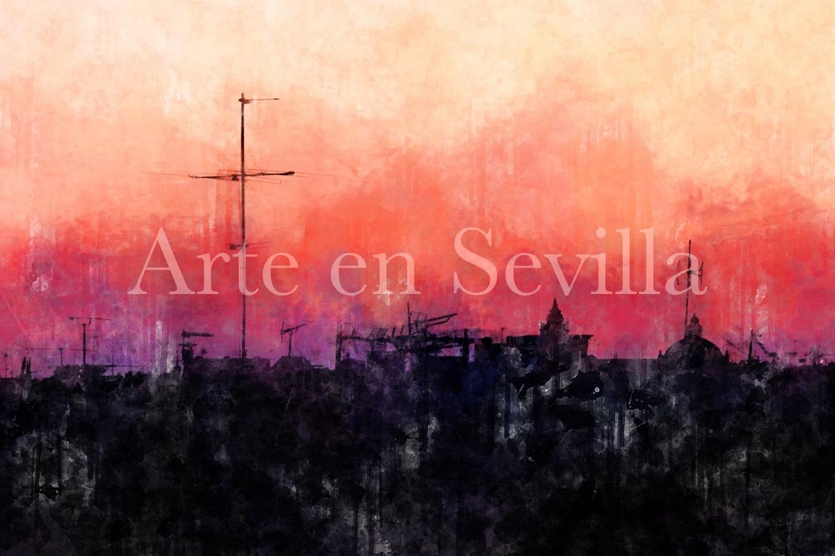 Dentro de la colección de cuadros modernos de Sevilla, esta pieza destaca por su carácter emocional y atmosférico. Frente a otras obras donde el protagonismo recae en la arquitectura, el río o la panorámica urbana, aquí la esencia de la imagen se concentra en el cielo, en la luz y en la vibración cromática que transforma el horizonte sevillano en un paisaje casi sentimental. Esa elección convierte la obra en una pieza especialmente poética y contemporánea.