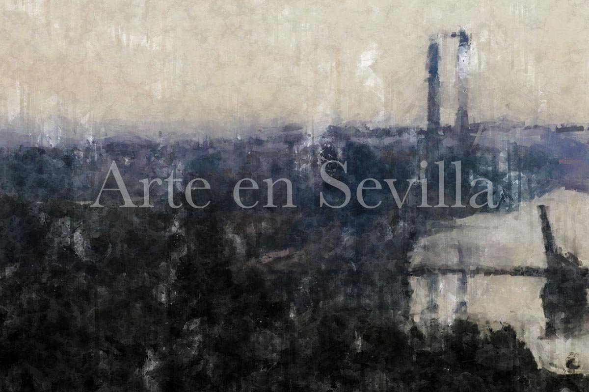 Puentes de Sevilla es un cuadro moderno de Sevilla que capta la ciudad desde una perspectiva amplia, serena y contemplativa. En esta obra, el paisaje urbano aparece envuelto en una atmósfera suave donde el río Guadalquivir y las siluetas de los puentes se convierten en los grandes protagonistas de la composición.