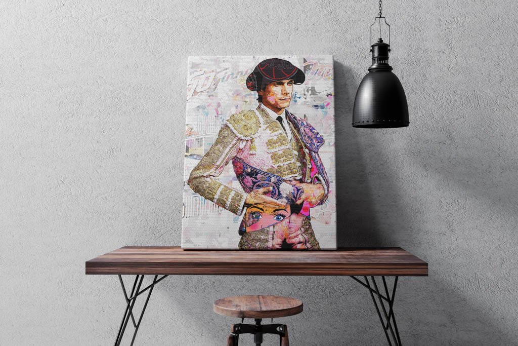 Cuadro moderno de toreros en lienzo, listo para colgar. Un retrato contemporáneo lleno de temple, elegancia y contención, ideal para decorar hogares, despachos o pisos turísticos con esencia taurina.