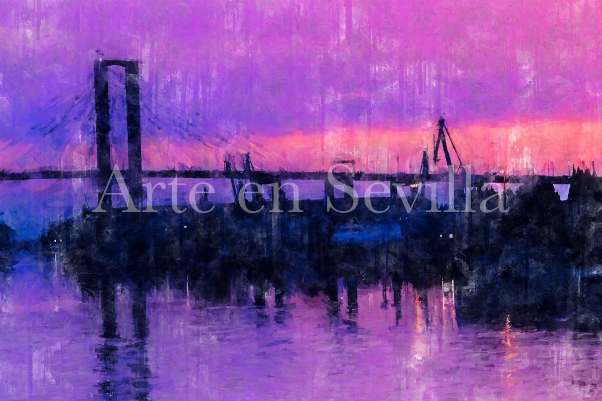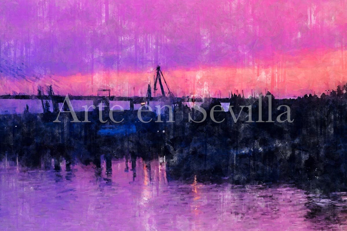 Dentro de la serie de cuadros modernos de Sevilla, esta pieza destaca por su carácter emocional. Más que describir un punto concreto de la ciudad, transmite una sensación: la de contemplar el Guadalquivir en un momento de calma y color, cuando la luz del día se transforma en una mezcla delicada de tonos suaves, reflejos vibrantes y silencio visual.
